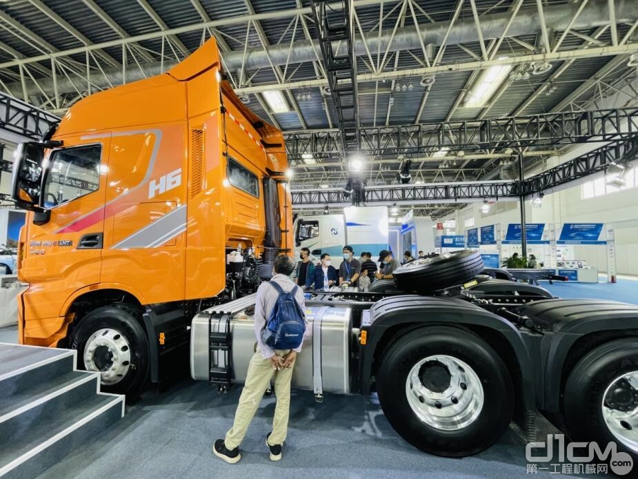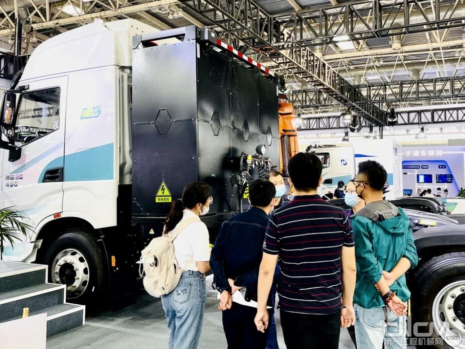 展会现场,两只“大白”——纯电、氢能新能源重卡相当瞩目。高大耀眼的红岩杰狮H6充换一体纯电动牵引车,具有“跑得快、提速快、换电快”三大优势,3-5分钟即可完成电池更换,且搭载先进成熟的282Kw•h宁德时代动力电池,配备玖行换电箱,动力响应速度快,加速性能优秀,可适用于港口驳运、园区物流、短途干线运输等多种使用场景,成为物流运输产业绿色转型、动能升级的优选。